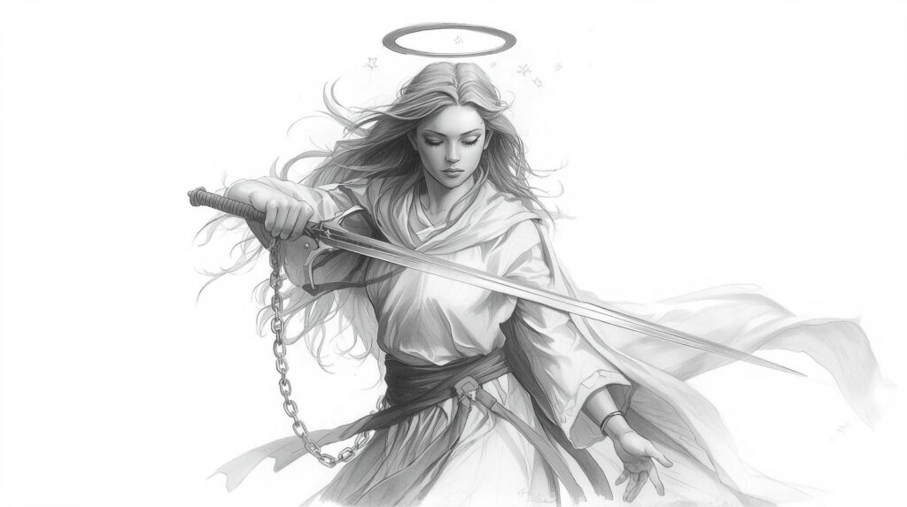 Dans les écrits, on la représente comme une guerrière céleste, non pas avec une épée pour attaquer, mais pour trancher avec le passé, les peurs et les doutes qui nous empêchent d’avancer. Elle est celle qui nous aide à nous libérer de nos chaînes invisibles, à affronter nos démons intérieurs et à retrouver notre souveraineté. L’Archange Michelle symbolise la force tranquille, la détermination et la protection. C’est l’alliée parfaite pour celle qui veut oser, s’affirmer et dire « non » sans culpabiliser, tout en restant fidèle à sa gentillesse.